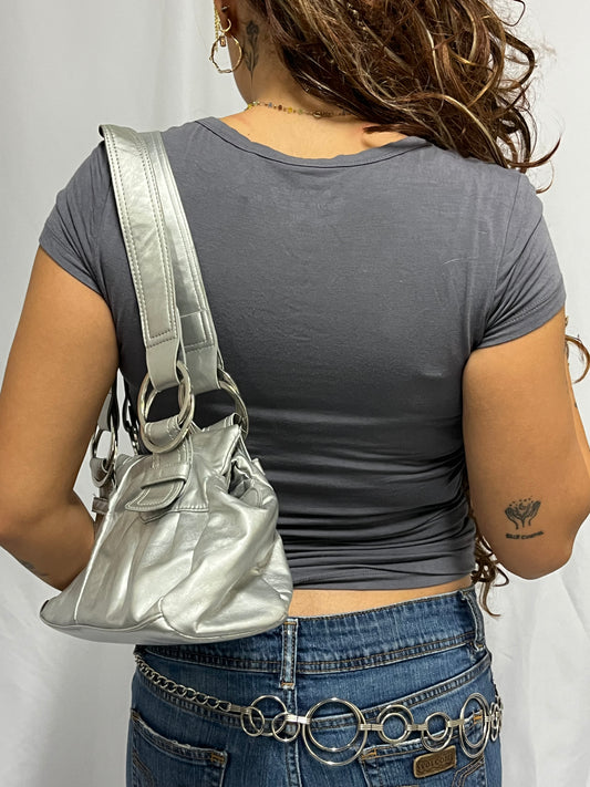 Purse - Spring Silver + Chrome Shoulder Bag New