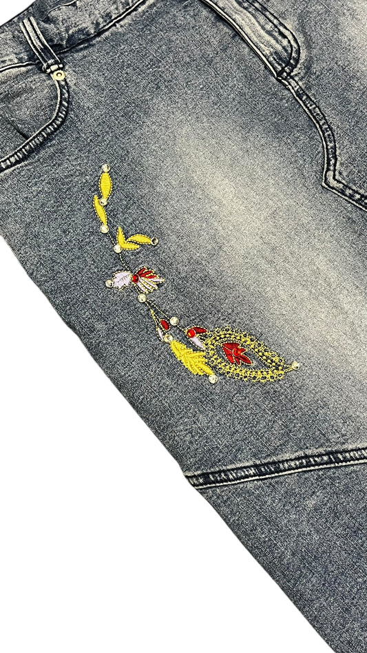 30" - Boom Boom 2000s Wide Leg Embroidered Waist Jeans