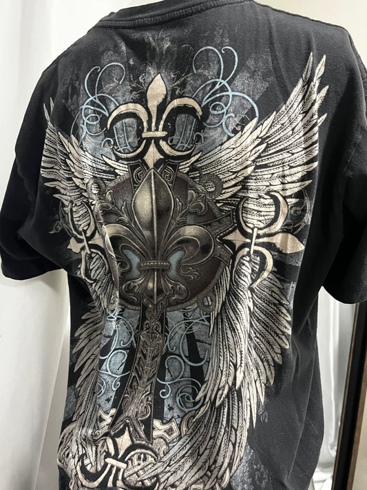 M/L - Affliction 2000s Velour + Lace Up Detail Graphic Tee