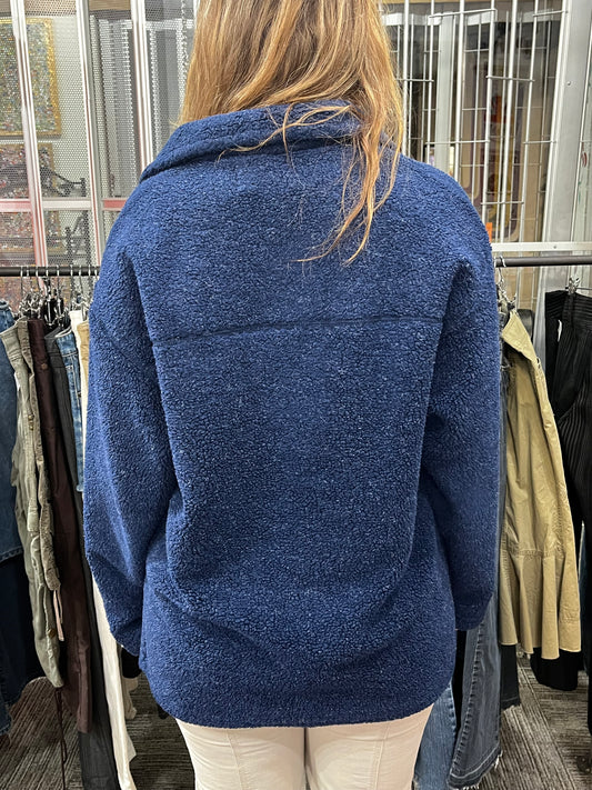 L - Hechter Jeans 90s Blue Fleece Button Jacket