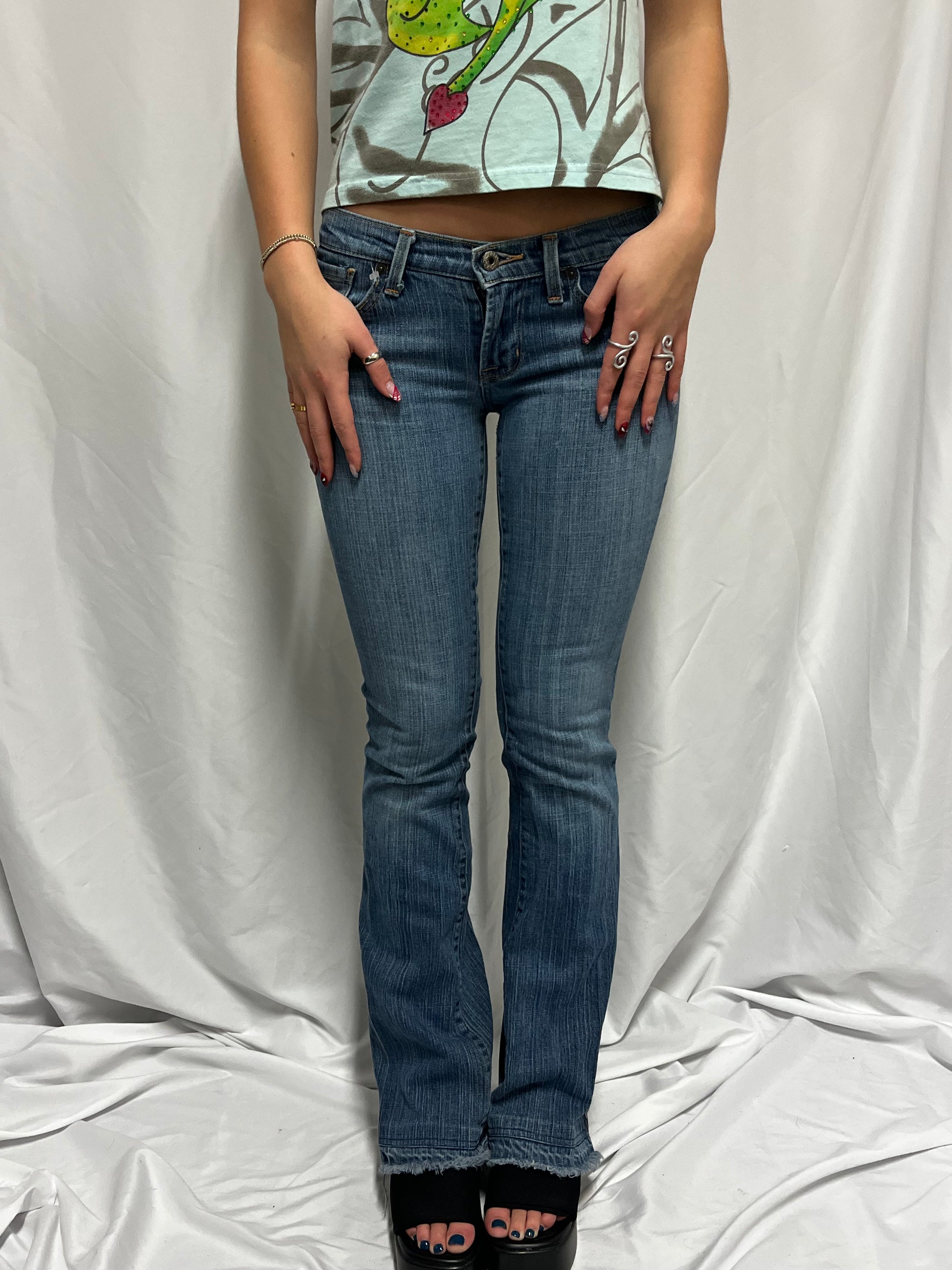 26” - People For Peace Y2K Embroidered Butterfly Low-Rise Jeans