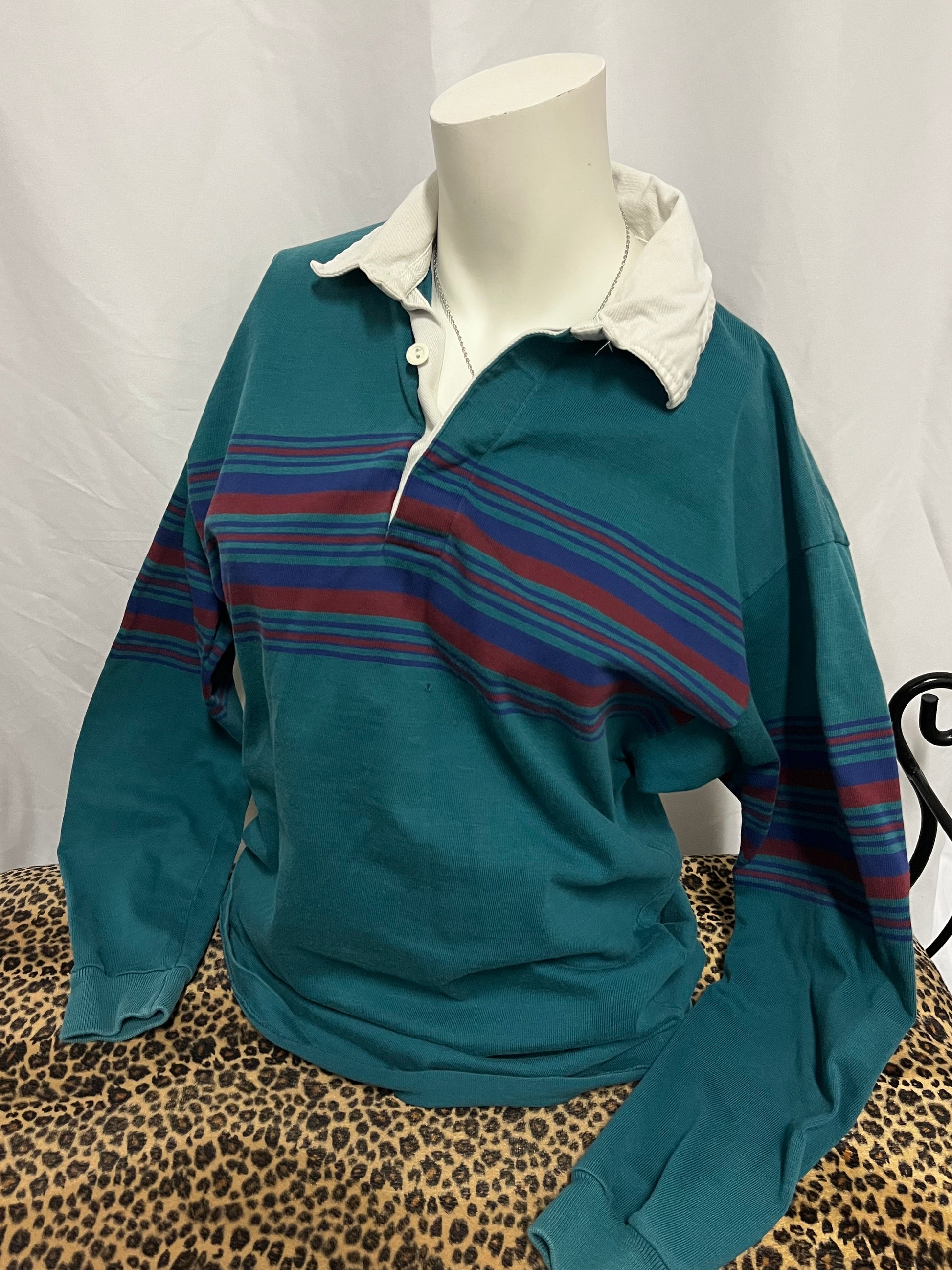 Neil Martin 90s 100% cotton made in USA rugby long sleeve collared shirt.
