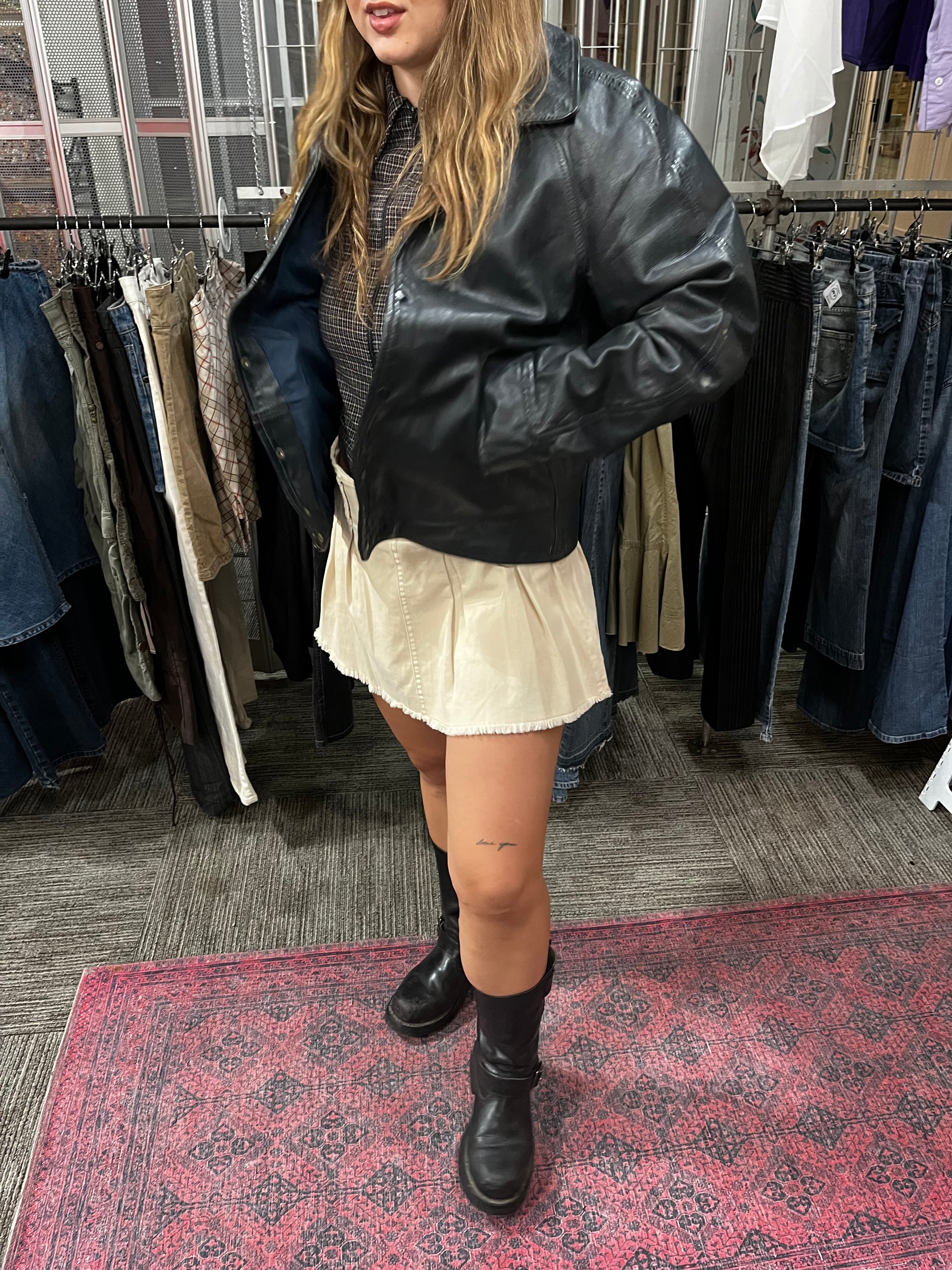 Seder Sportswear Winnipeg leather jacket is from the 1950s to very early 1960s. Left chest patch has been removed. Dark navy blue. Button down front. some buttons have some colour rubbed off due to age. Open pockets. All details shown in photos. In excellent condition considering its age. Beautiful piece of history.