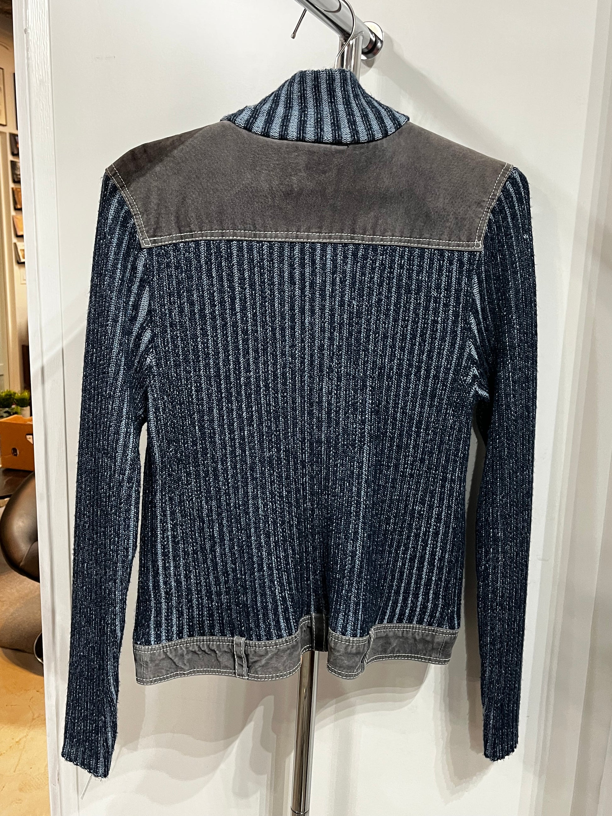Lightweight jacket. Beautifully made, wool blend knit body with genuine leather shoulders and accents. Star buttons. Such a unique piece.