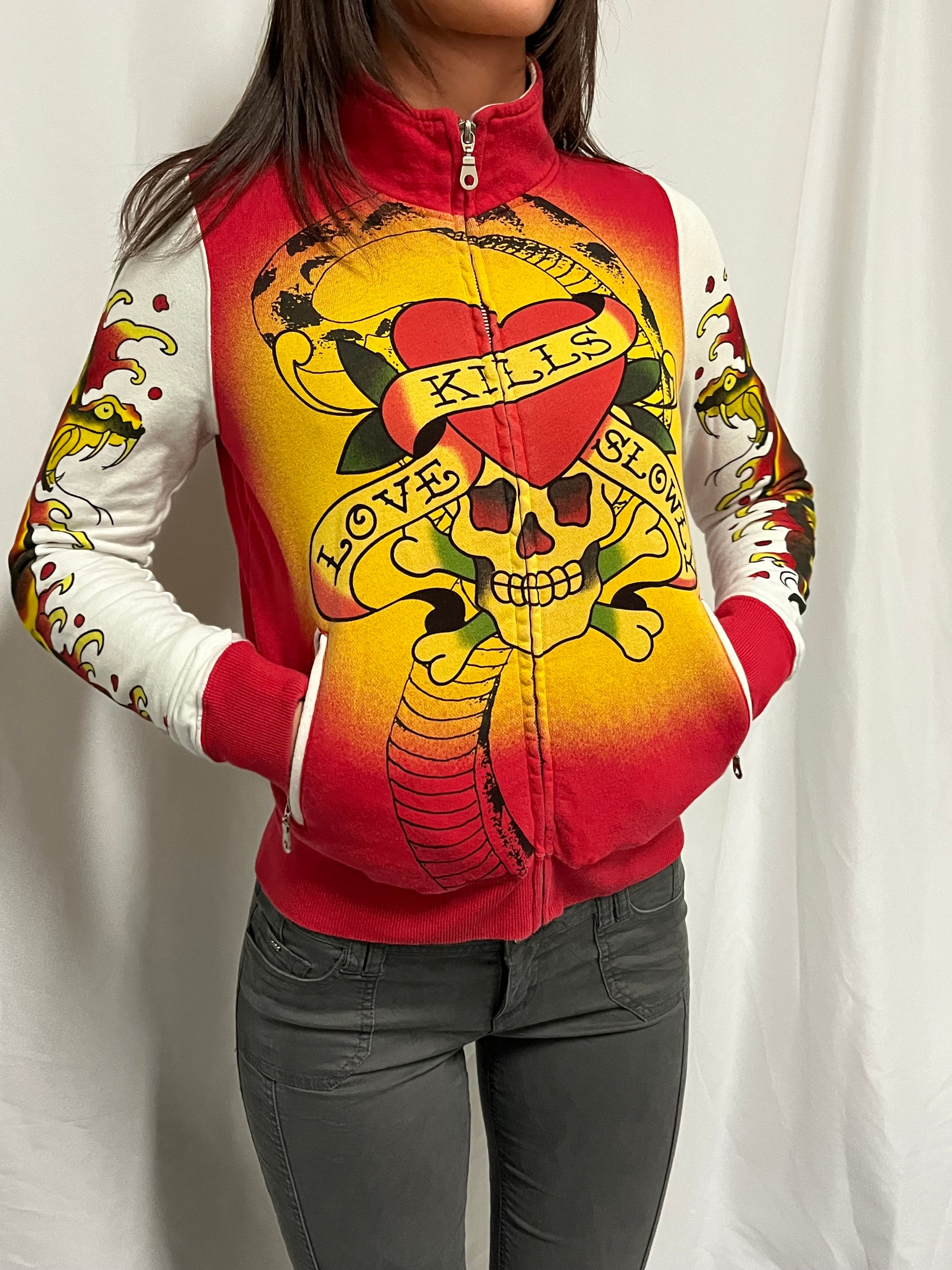 S - Ed Hardy Y2K "Love Kills Slowly" Tattoo Zip Sweatshirt