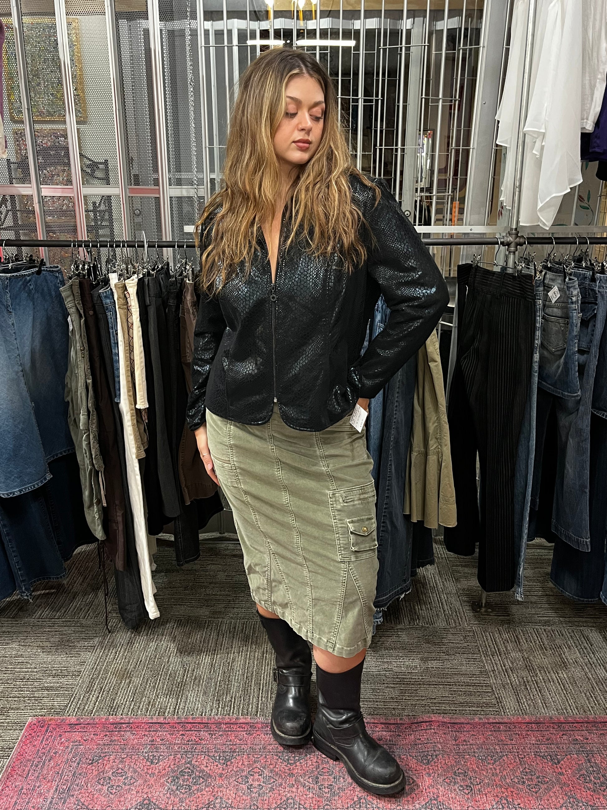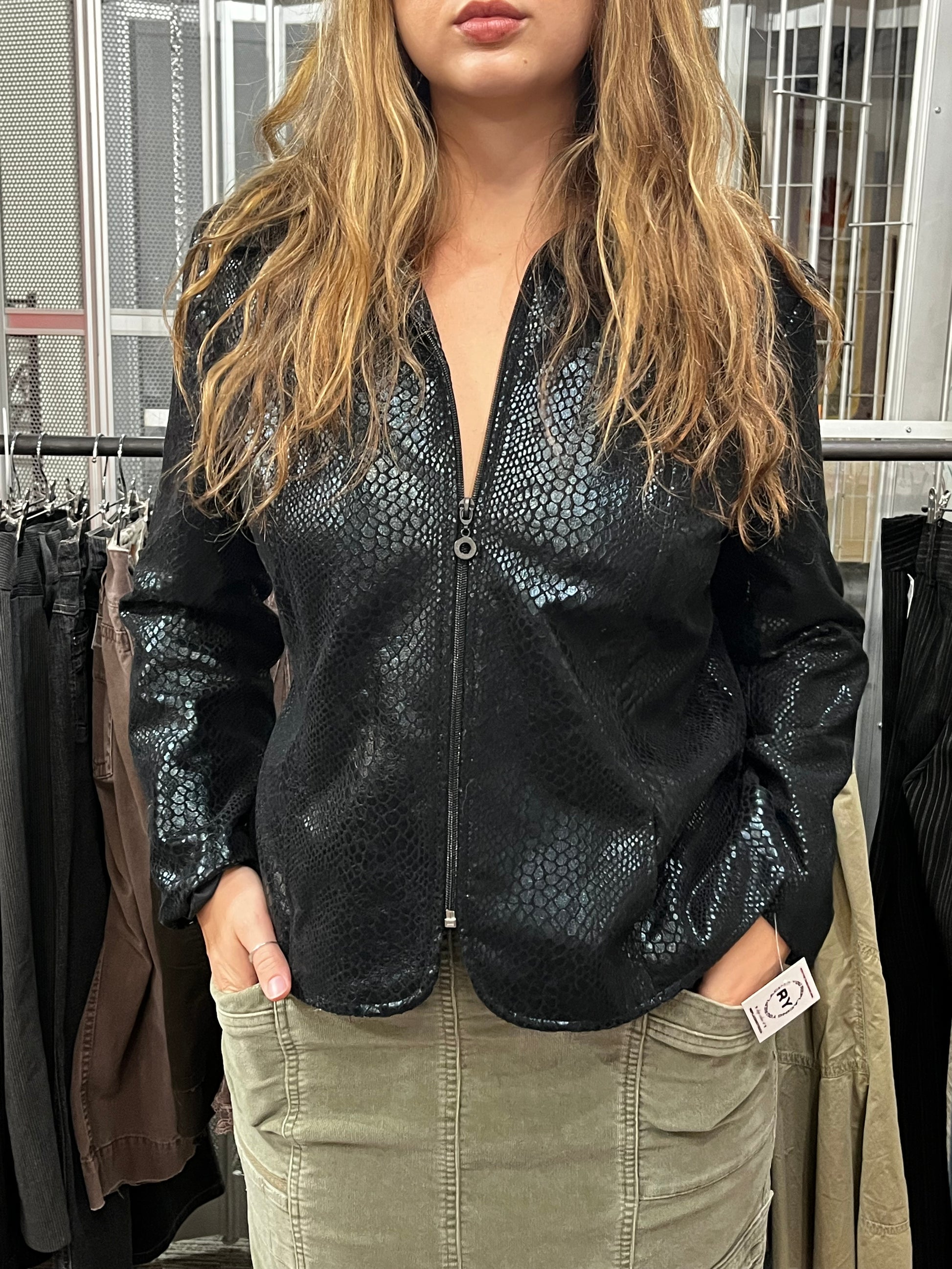 SZ 12 - TanJay Snakeskin Patterned Collared Zip Jacket